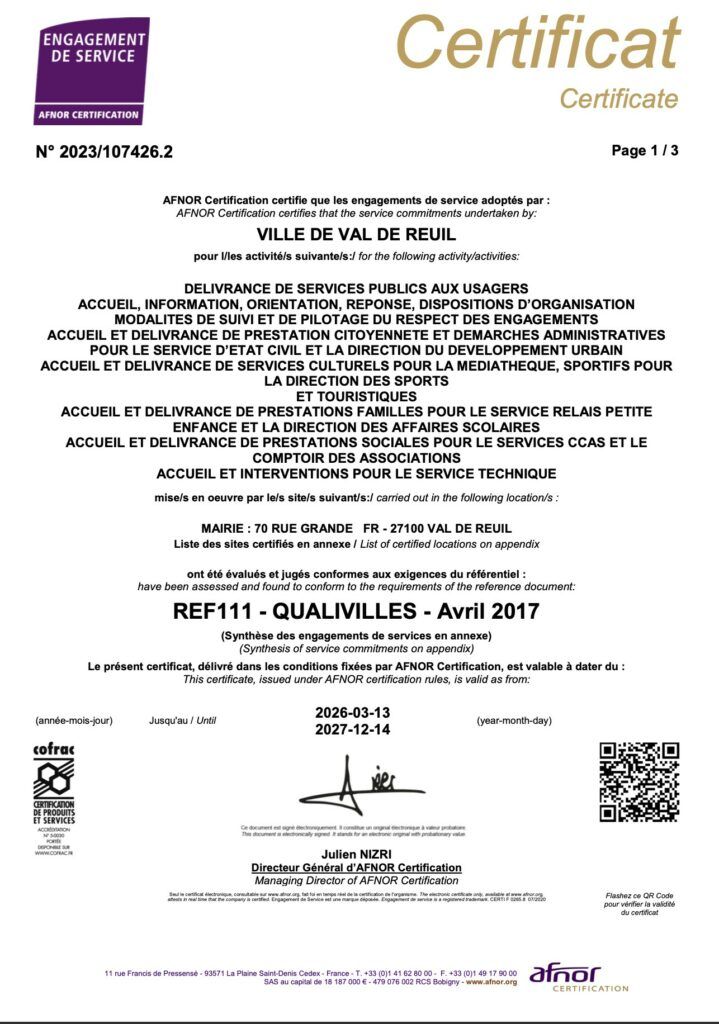 La certification Qualiville est pour Val-de-Reuil l’aboutissement de longs mois de mobilisation. Car si le label est décerné à peu de collectivités, c’est que l’exigence de qualité qu’il impose est très grande. Plusieurs dizaines de points ont ainsi été passés au crible : à commencer par la courtoisie des agents d’accueil et la réactivité de la collectivité pour répondre aux besoins des usagers. Les délais de réponse aux sollicitations sont également des éléments fondamentaux de la certification, tout comme la signalétique et les affichages dans les différents équipements publics mais aussi la documentation mise à disposition du public.