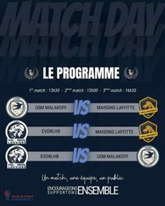 Le coup d’envoi du premier match est à 13h30 et opposera les équipes de Malakoff et Maison Laffitte.