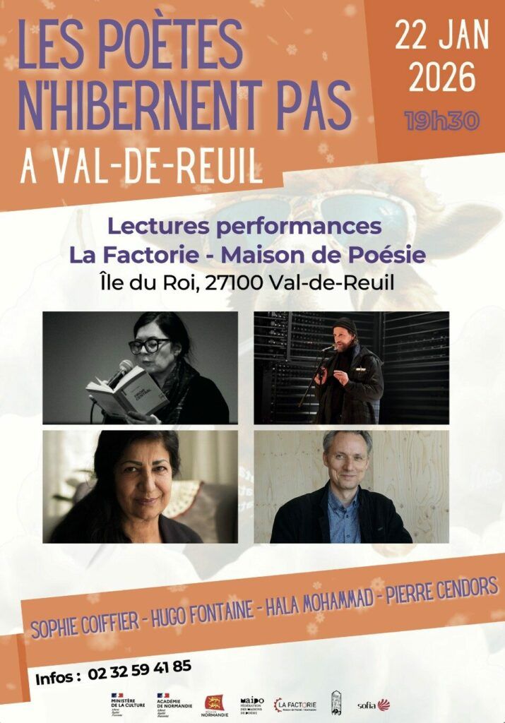 Après être passé.e.s par l’Opéra de Rouen et la médiathèque de Honfleur, les poète.sse.s débarquent à Val-de-Reuil avant de continuer leur route vers les Hauts-de-France ! Venez découvrir l’univers de Sophie Coiffier, Hugo Fontaine, Hala Mohammad et Pierre Cendors.