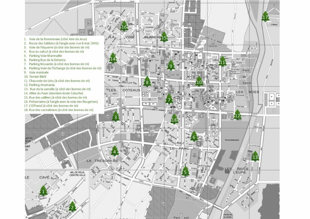 Déposé dans l’une des 18 zones de collecte (voir plan ci-contre), votre sapin sera broyé et valorisé sous forme de paillisou de compost, utilisés ensuite pour nourrir et protéger les espaces verts de la ville.